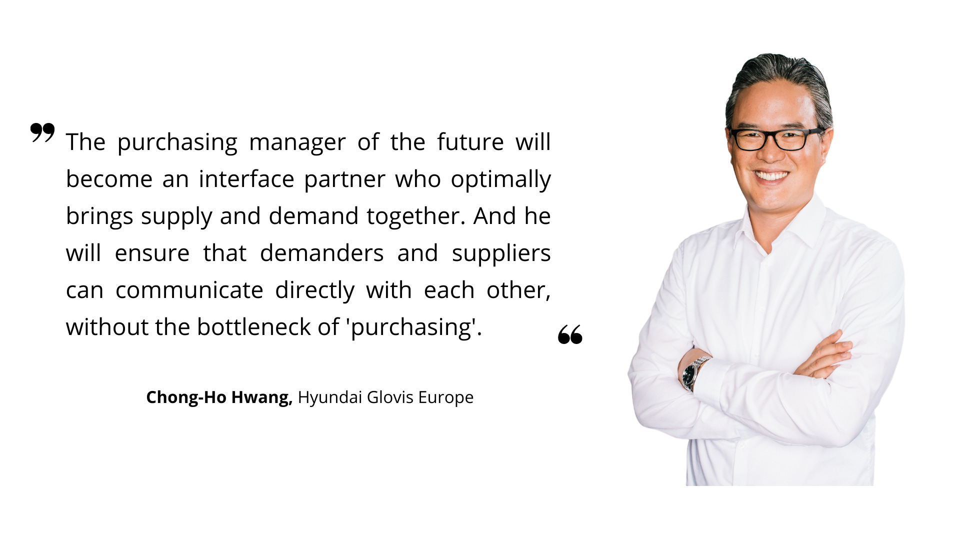 Chong-Ho Hwang: The procurement manager of the past was responsible for best price and best delivery conditions. The purchasing manager of the future will become an interface partner who optimally brings supply and demand together. And he will ensure that demanders and suppliers can communicate directly with each other, without the bottleneck of ‘purchasing’. He must solve questions such as: How do I build the interfaces? Which technology do I use? How do I make targeted use of the platform economy? This will confront many people with very big, very personal challenges – because the job description also changes the necessary competencies. But the way I see it, for years we have been trying to better coordinate purchasing, logistics and production. And then we called it supply chain management. But where is the CSCO? It was very often to complicated to really melt these functions. Technologies such as blockchain and AI could make it possible for the first time to really merge the content of the three disciplines mentioned at their interfaces. And then there will be a CSCO rather than a CPO.