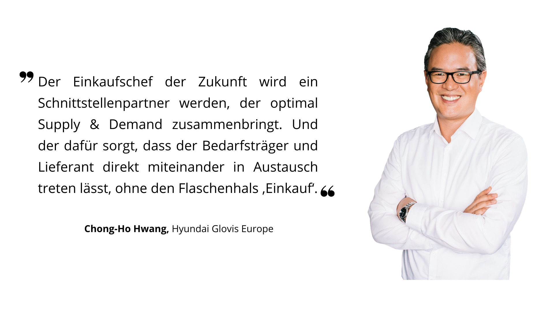 Der CPO wird künftig anders heißen. Sein Job: Den Flaschenhals ‚Einkauf‘ aufzulösen und direkte Interaktion zwischen Bedarfsträger und Lieferant zu ermöglichen. Chong-Ho Hwang, Leiter Unternehmensentwicklung und Innovation bei Hyundai Glovis Europe, ist sich sicher: KI und Blockchain werden erstmals Einkauf, Logistik und Produktion in der Steuerung wirklich miteinander verschmelzen. Wir haben mit ihm gesprochen.